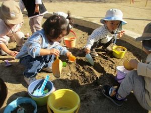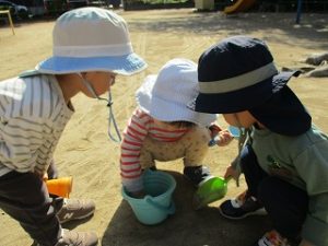 過ごしやすい季節、天気の良い日は近くの公園で戸外あそびを楽しんでいます。